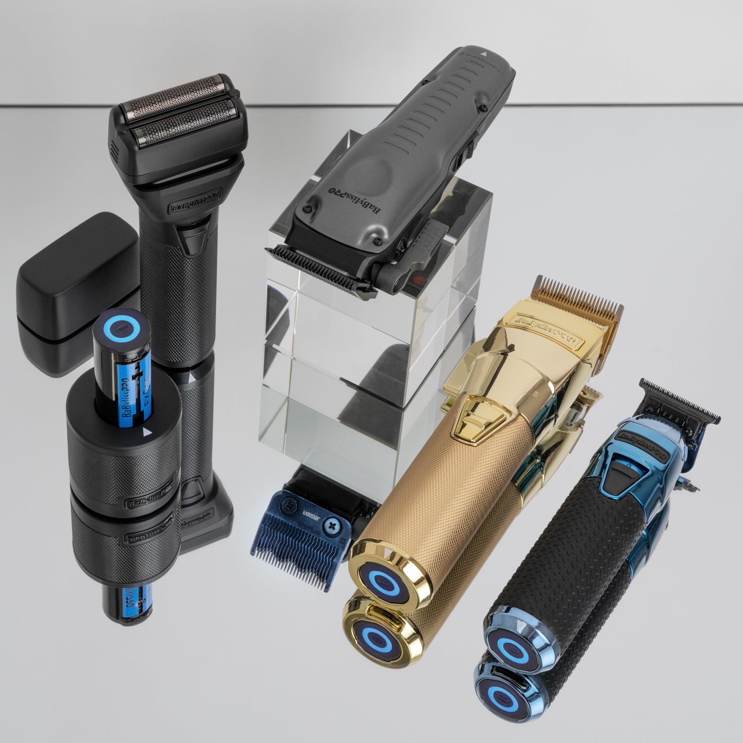 An entire ecosystem of tools based on ONE battery. Change the way you work with BaBylissPRO FXONE BlackFX collection. BaBylissPRO FXONE BlackFX Double Foil Shaver is a professional, all metal shaver with a replaceable and interchangeable lithium battery pack. Quick battery release button and up to 3 hours of runtime. 10,000 rpm N1 brushless motor with dual ball bearings for greater efficiency. Closer, cleaner shaves thanks to the pivoting foil head with locking feature and hypoallergenic black titanium foils. Check out BaByliss PRO FXONE BlackFX Clipper and Trimmer, all compatible with the same battery. A revolution in efficiency!