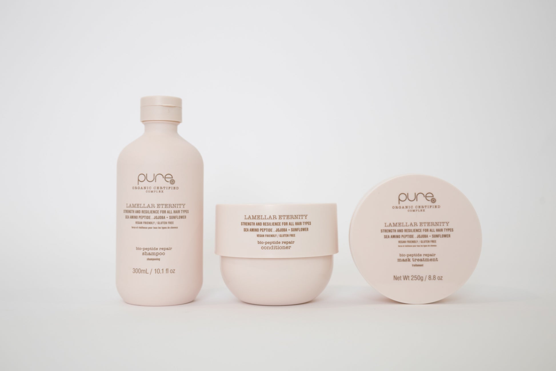 Infused with Pure’s signature Organic Complex, along with certified organic Sea Amino Peptides, Sunflower and Jojoba Oils, it delivers targeted repair while deeply nourishing and hydrating the hair. Powered by innovative Lamellar Bio-Science technology, the formula works precisely where it’s needed to smooth, strengthen and enhance manageability without weighing hair down.