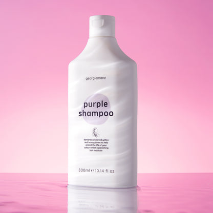1) Massage the purple shampoo into hair and scalp 2) Leave on for 1-2 minutes then rinse thoroughly until water runs clear and repeat if necessary Pair with the georgiemane purple hair mask for maximum repair & toning results