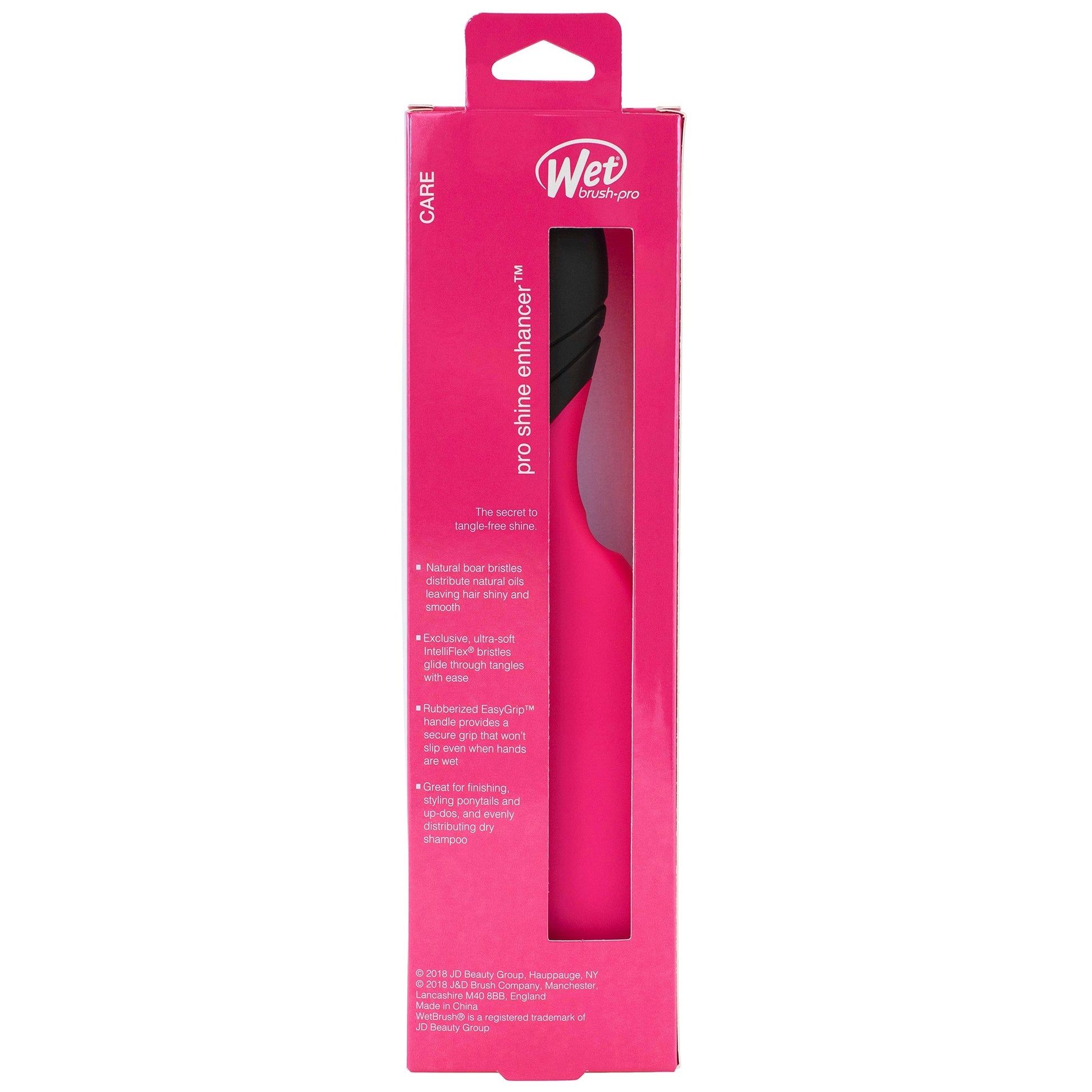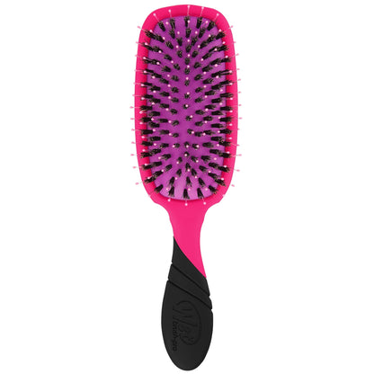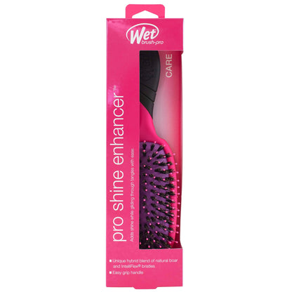 Add shine while gliding through tangles with less effort, pain and breakage. WetBrush Pro Shine Enhancer Hair Brush in Pink is designed by stylists for stylists. Boar bristles distribute hair's own oils, leaving hair shiny and smooth. Exclusive, ultra-soft IntelliFlex bristles diffuse tangles with ease. Great for finishing, styling updos and evenly distributing dry shampoo.
