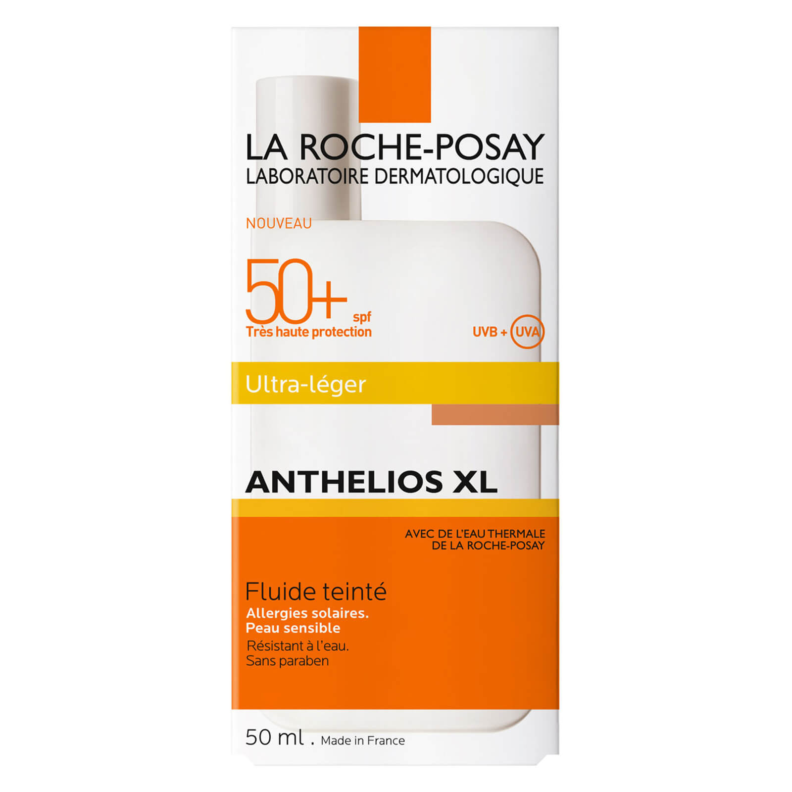 Anthelios Tinted Fluid SPF 50+ is a lightweight and tinted facial sunscreen that provides very high UVA/UVB broad spectrum protection for even the most sensitive skin and sensitive eyes. Ideal for normal to combination skin types. Specifically designed for sensitive skin.