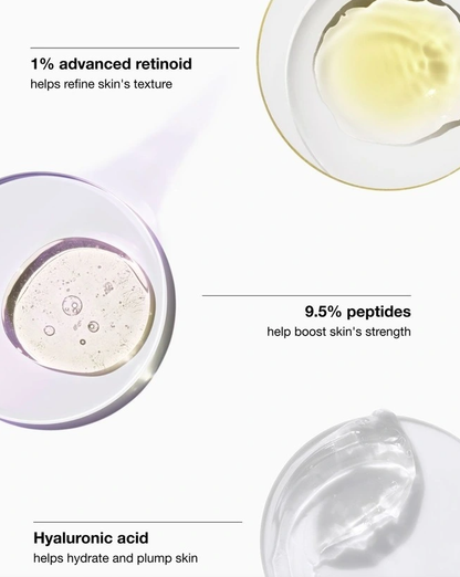 - Key Ingredients: Retinoid, Sulfate-Free, Paraben Free, Peptides, Fragrance-Free, Hyaluronic Acid, Oil Free