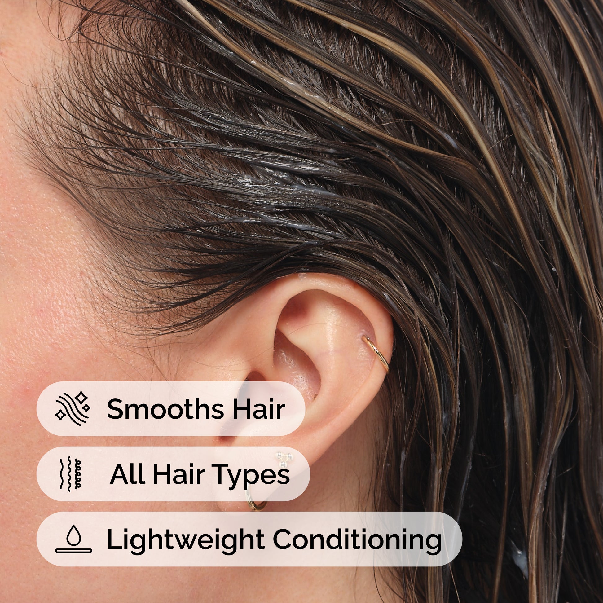 A creamy white emulsion that uses a minimalist approach, focusing solely on the multi-functional conditioning ingredient, without the addition of other ingredients into the formulation that could potentially weigh the hair down.