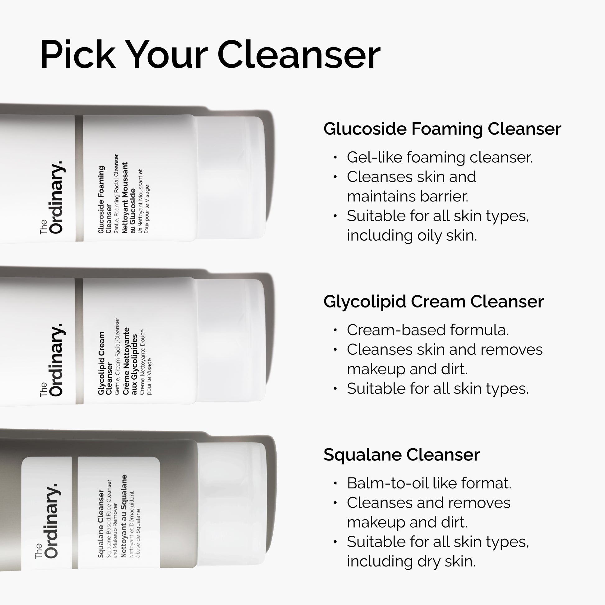A gentle Glycolipid Cream Cleanser by The Ordinary. Suitable for all skin types, the hydrating formula melts away makeup and impurities without stripping the skin of moisture.