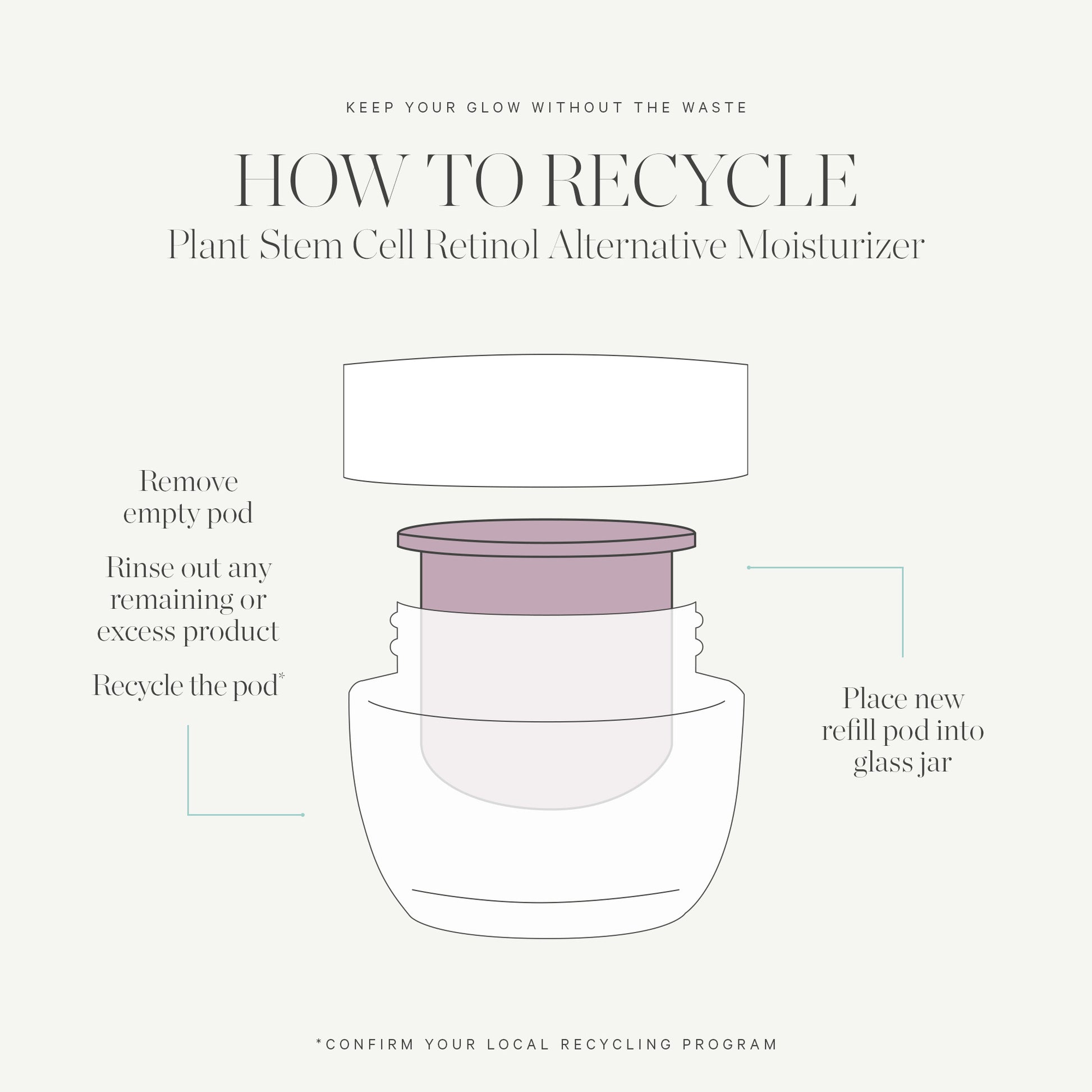 Warm in the palms of your hands and massage onto a clean face, neck and décolleté in the morning and evening after your serum. Reduce waste by replenishing your facial moisturizer with a refill pod.